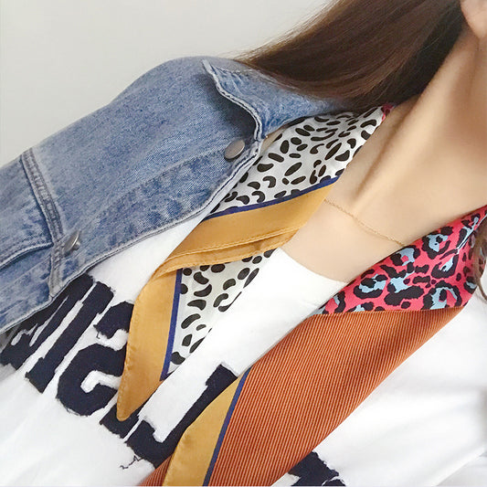 新しいスタイルのバッグ小さな四角いタオルシルクスカーフ人工シルクヒョウプリントカラーマッチングレトロイン芸術的な韓国の小さなスカーフ女性