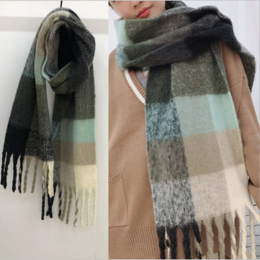 強力なメーカーのカシミアウールエアコンブランケットショールデュアルユース秋冬チェック柄小年齢にきびスカーフ