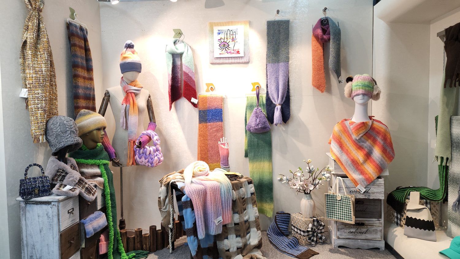 Products:shawls, scarves, caps, beanies, hats, gloves, bags ect.